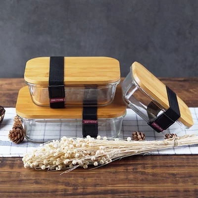 玻璃卡扣密封罐 耐热竹盖玻璃储物罐 厨房杂粮食品收纳罐