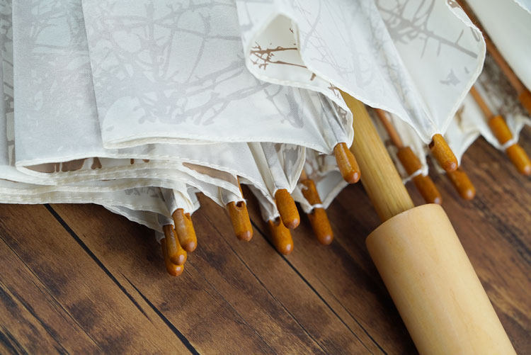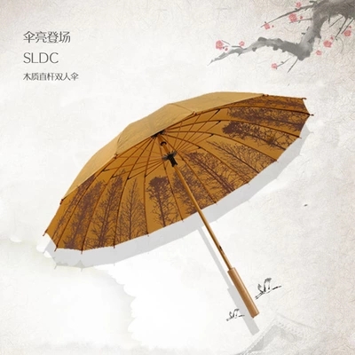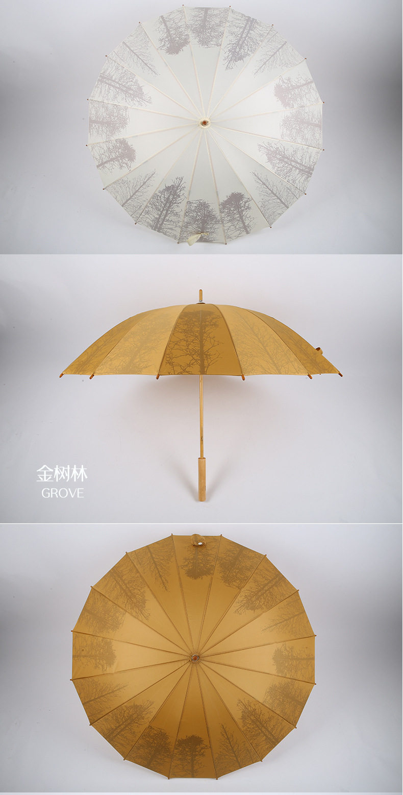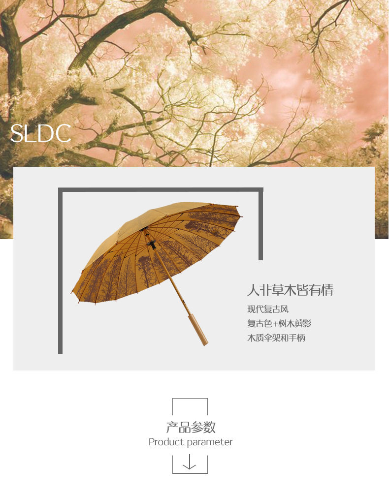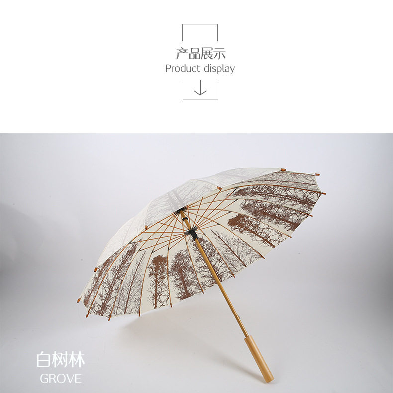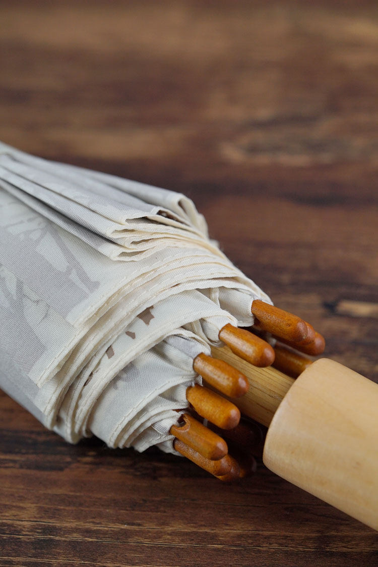定制日式文艺气质木柄棒伞小清新印花长柄晴雨伞防风防晒原木雨伞