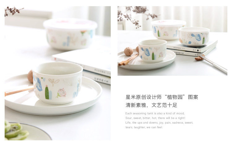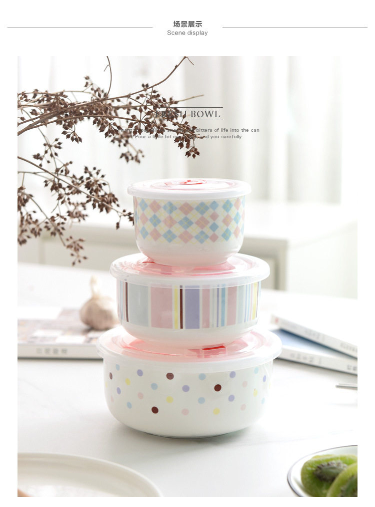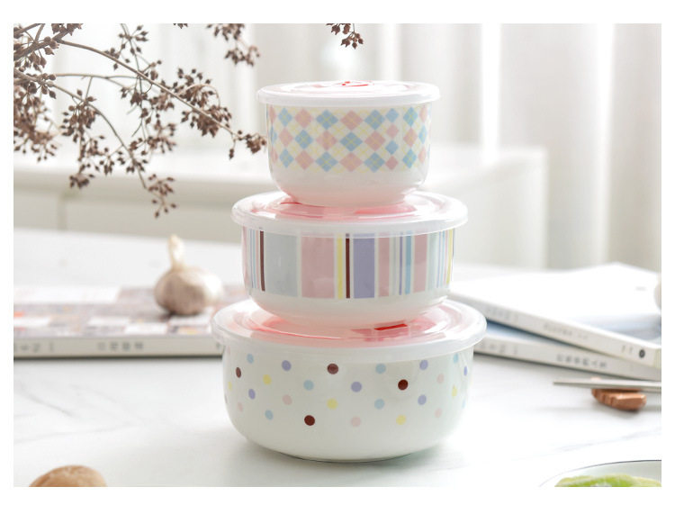 耐热大号陶瓷保鲜碗盒三件套装饭盒便当盒密封盒子微波炉专用带盖