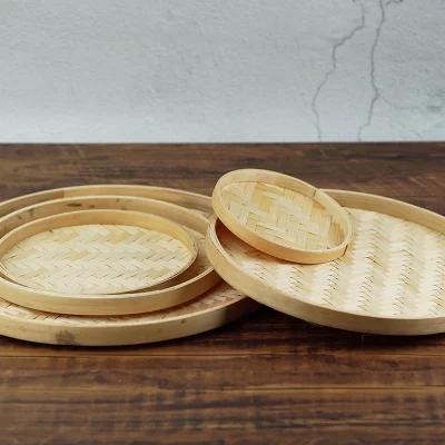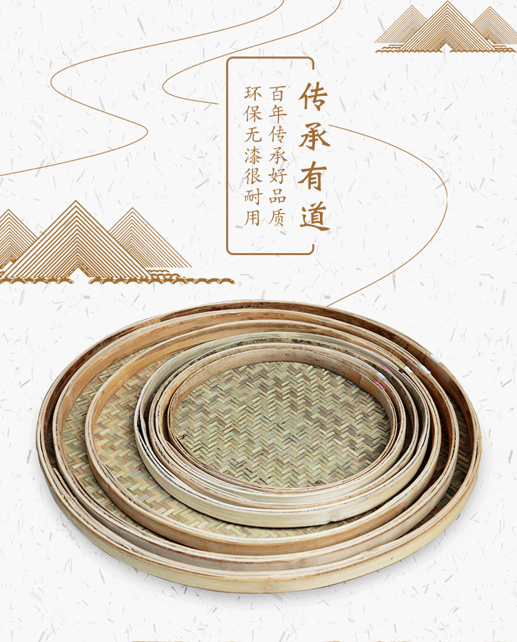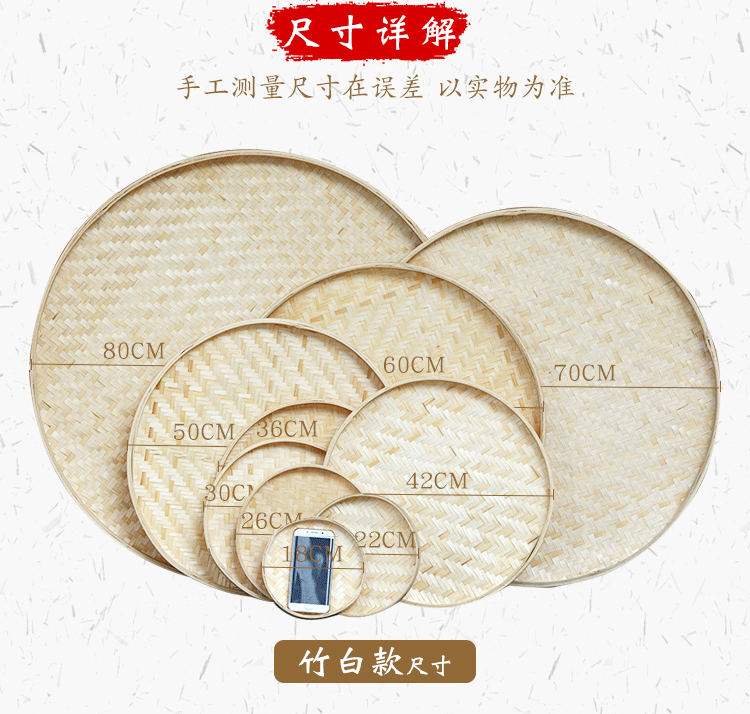 手工编织竹制品簸箕竹编无孔竹筛子圆簸箕晾晒幼儿园绘画装饰道具