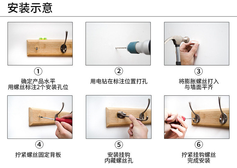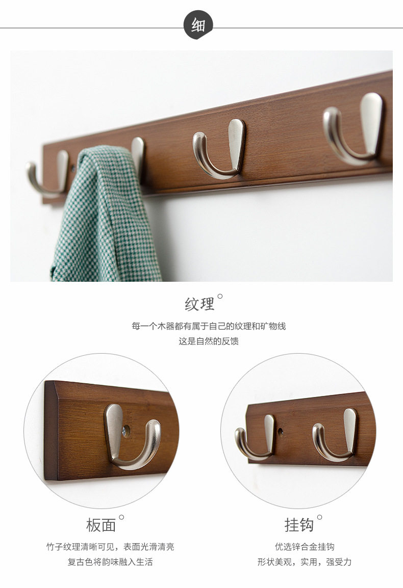 衣服挂钩竹木挂衣钩创意实木墙壁衣架墙上挂衣架壁挂衣帽钩排钩
