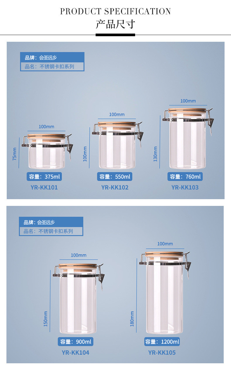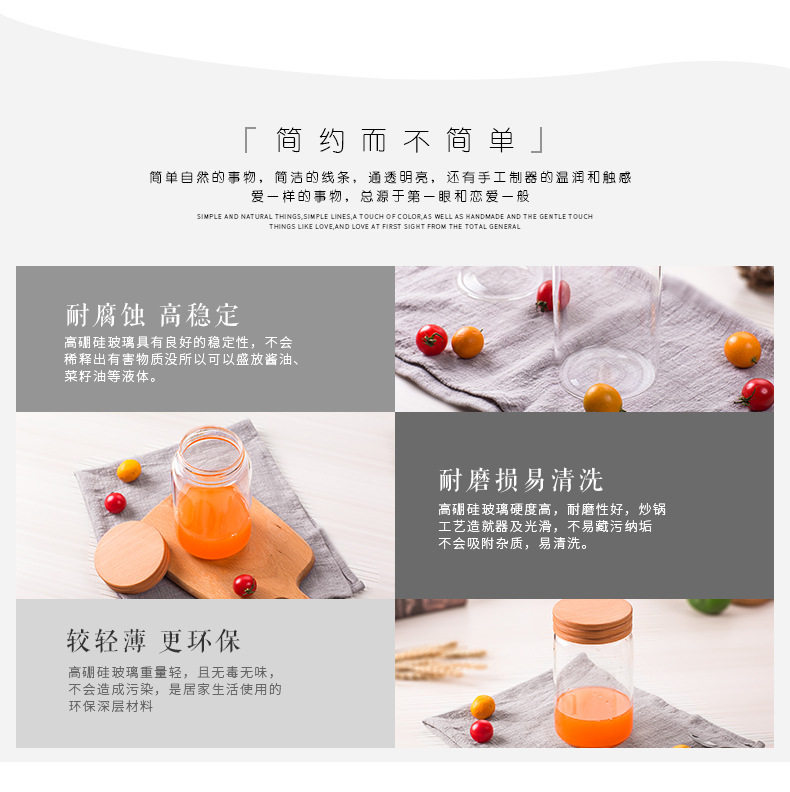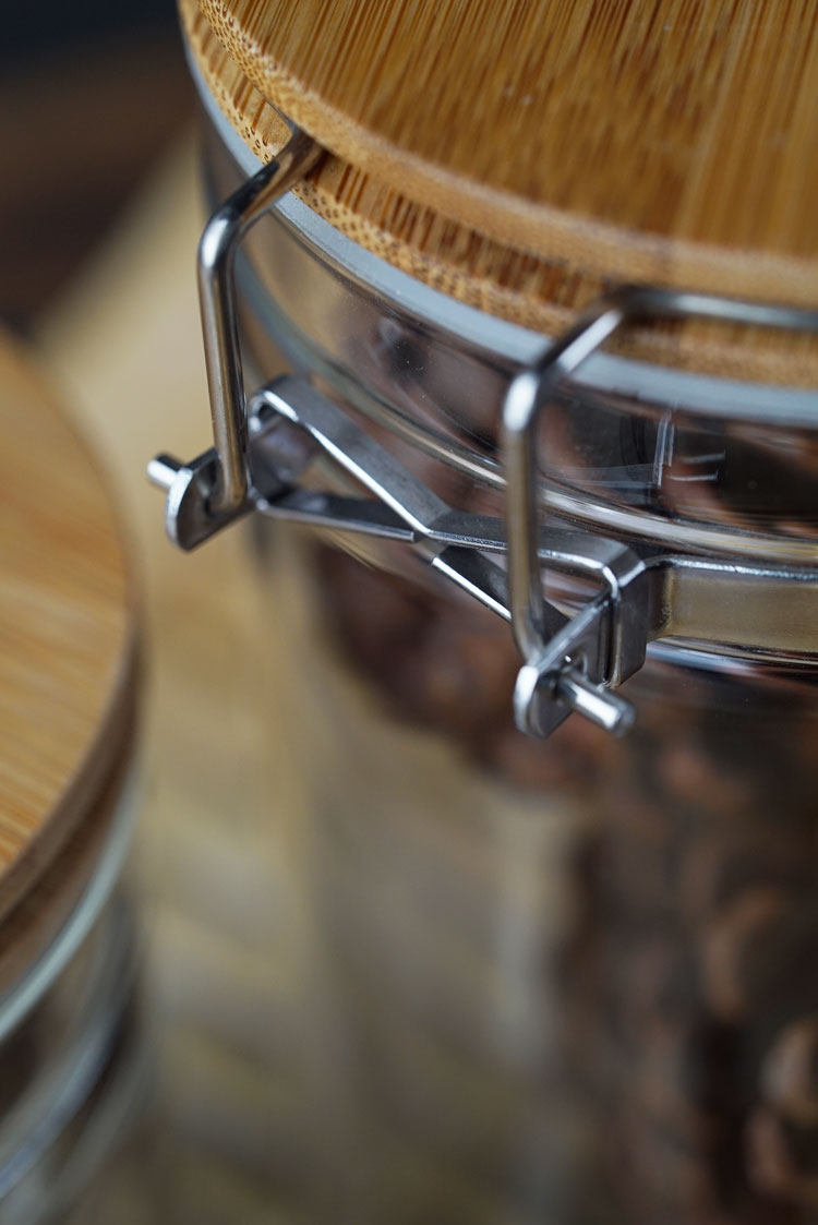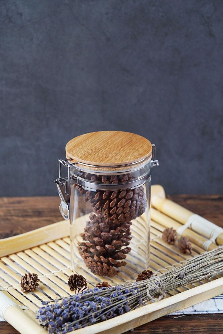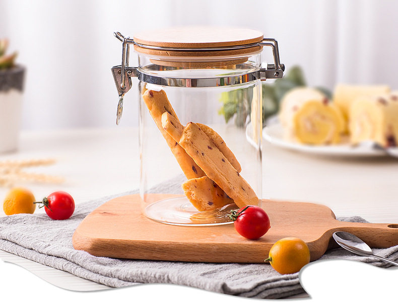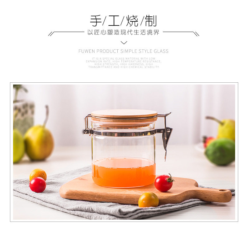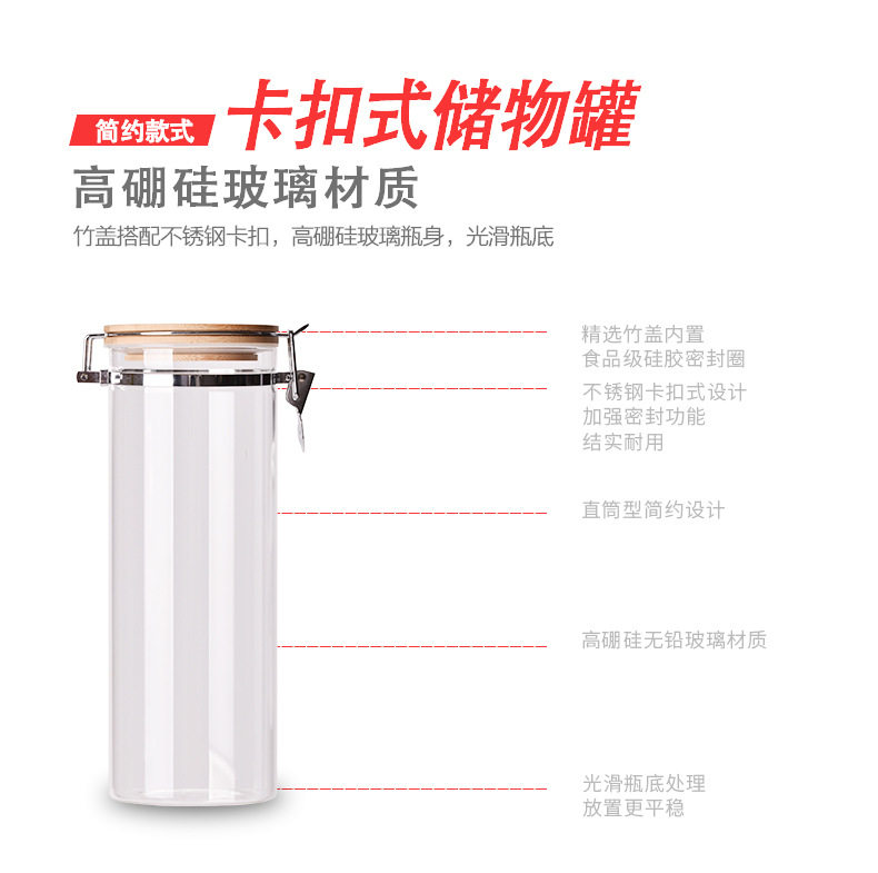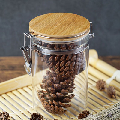 玻璃卡扣密封罐 耐热竹盖玻璃储物罐 厨房杂粮食品收纳罐