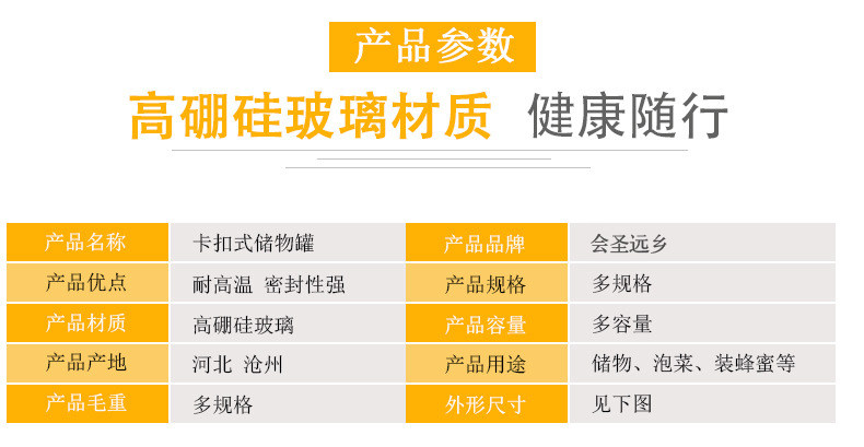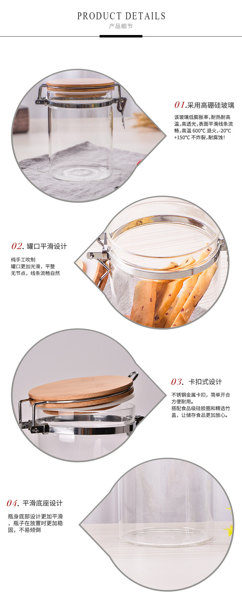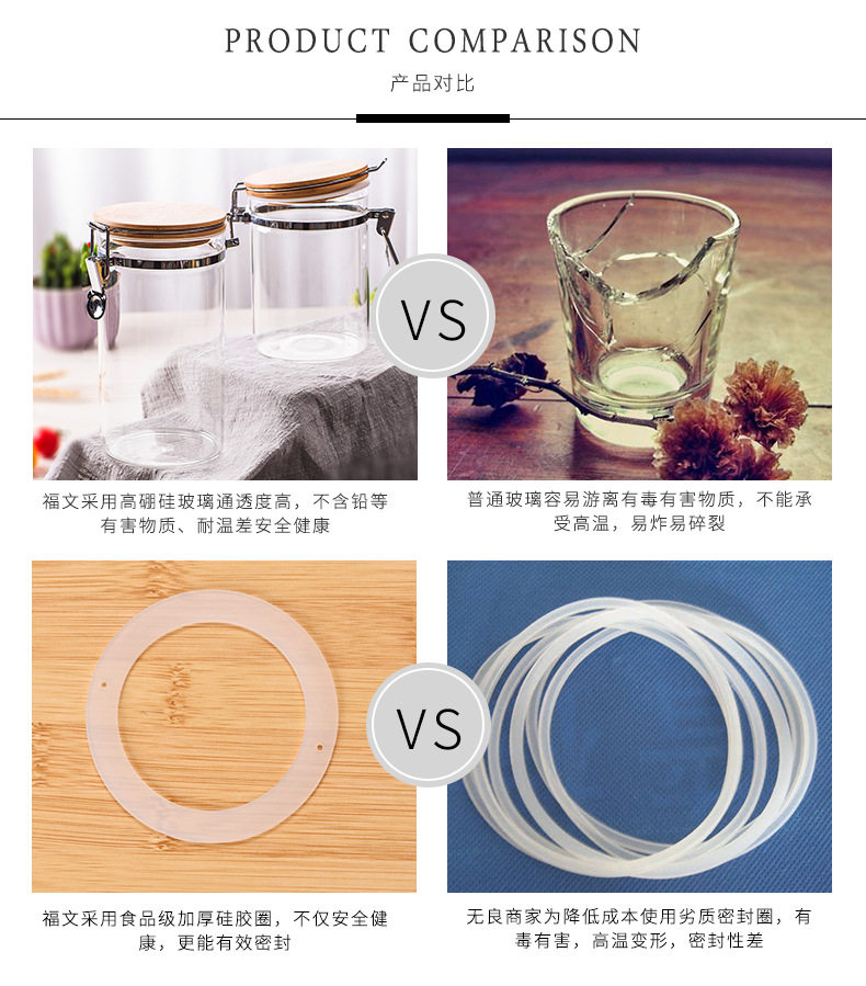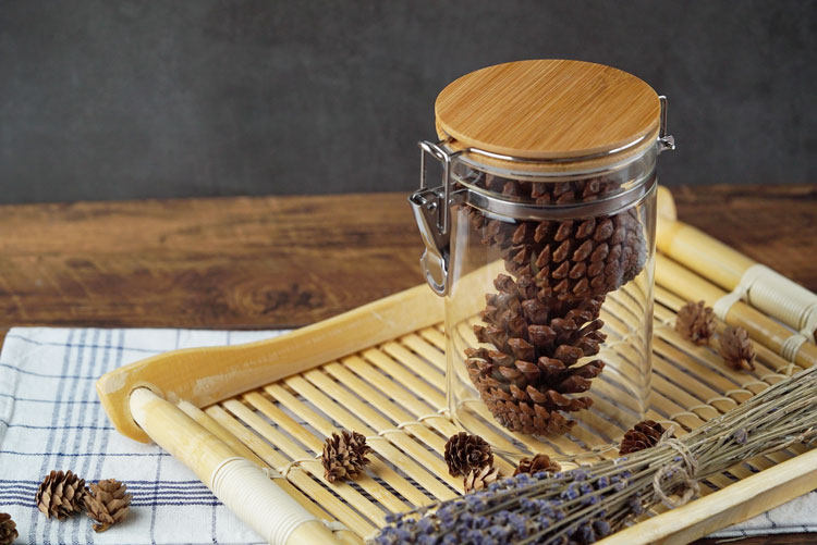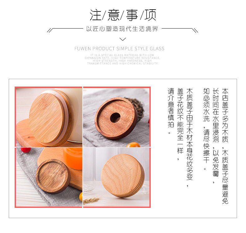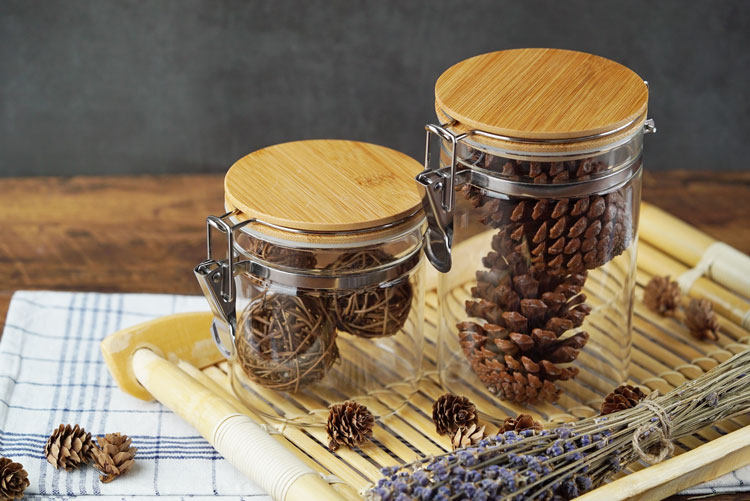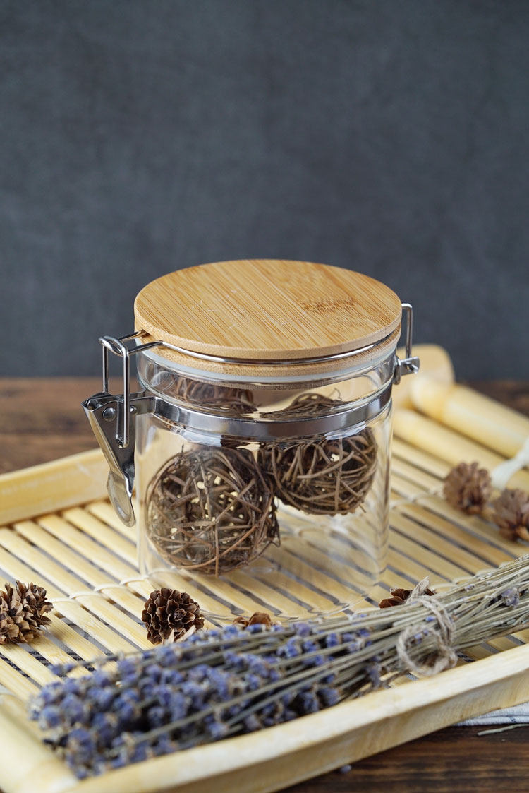 玻璃卡扣密封罐 耐热竹盖玻璃储物罐 厨房杂粮食品收纳罐