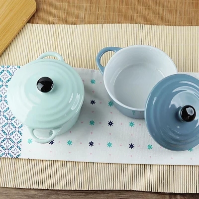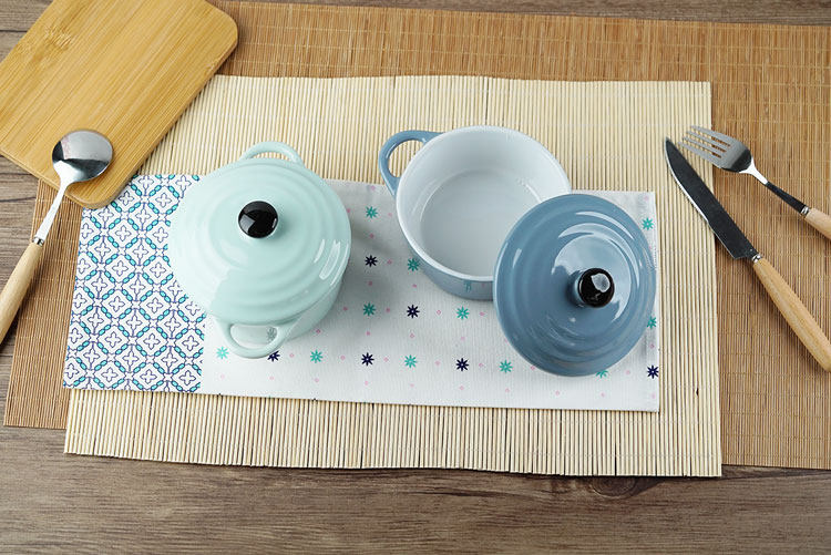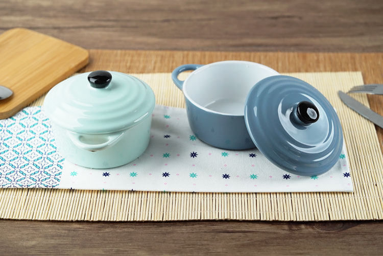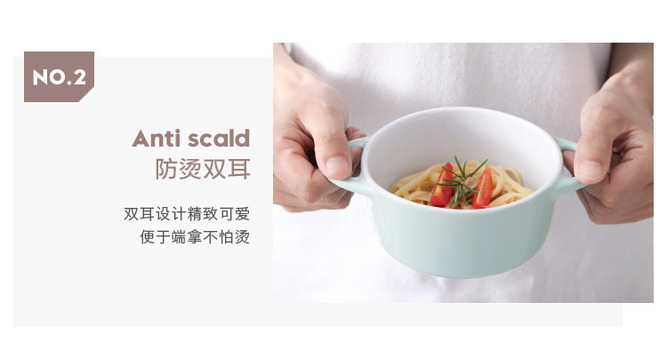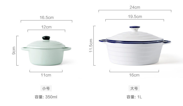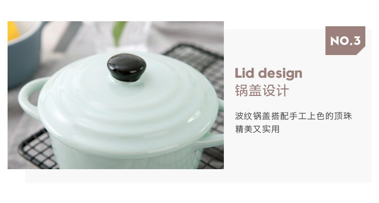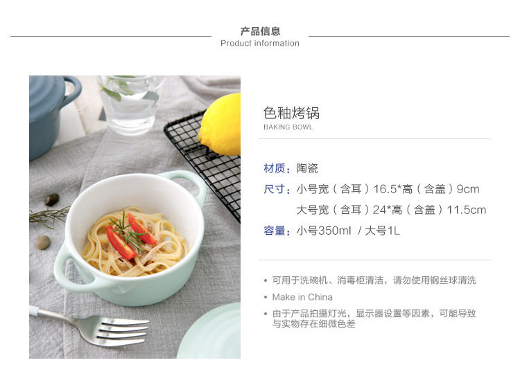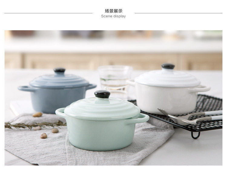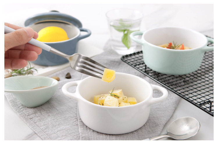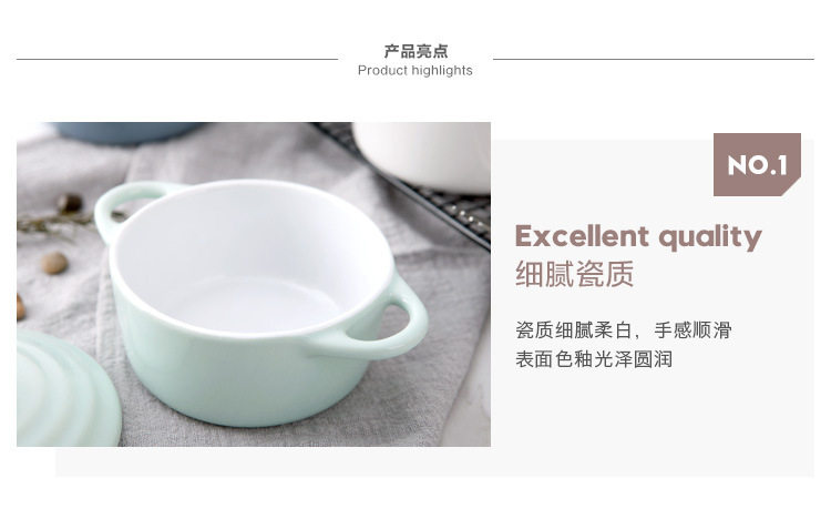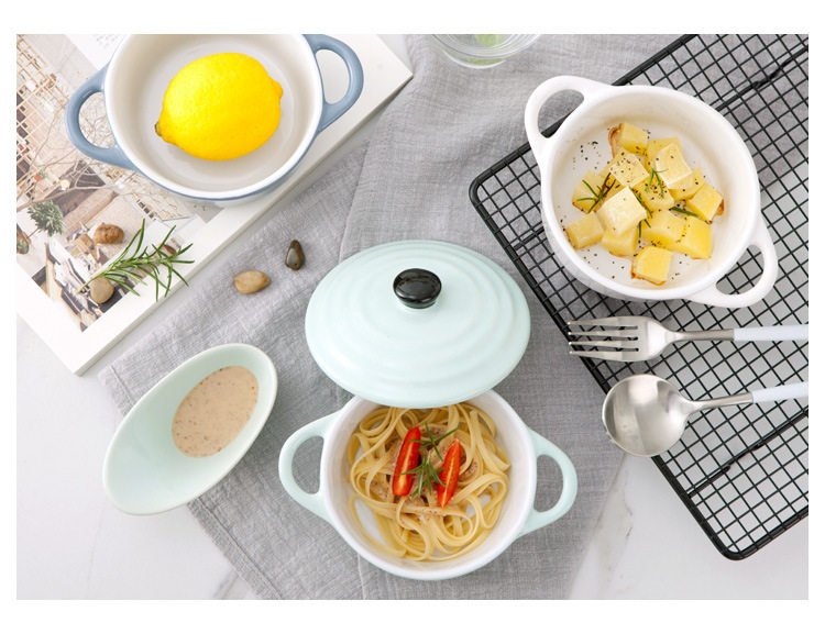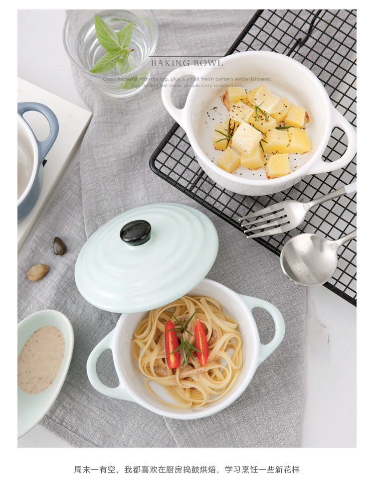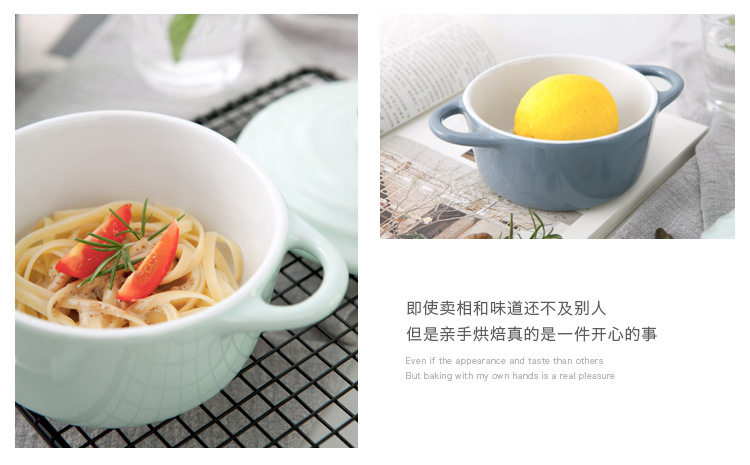 创意西式陶瓷烤碗防烫饭碗家用双耳带盖汤碗 早餐碗烘焙烤盅