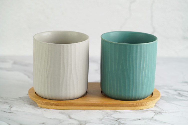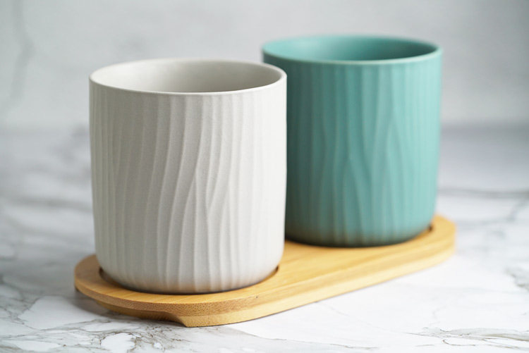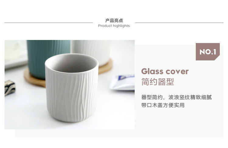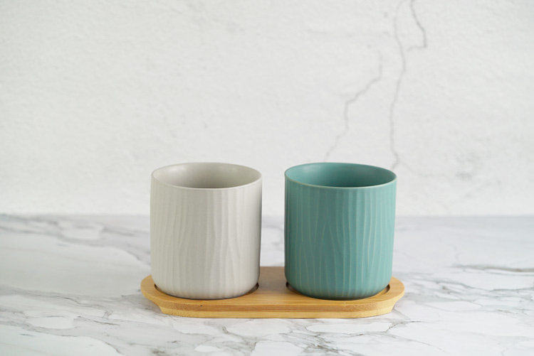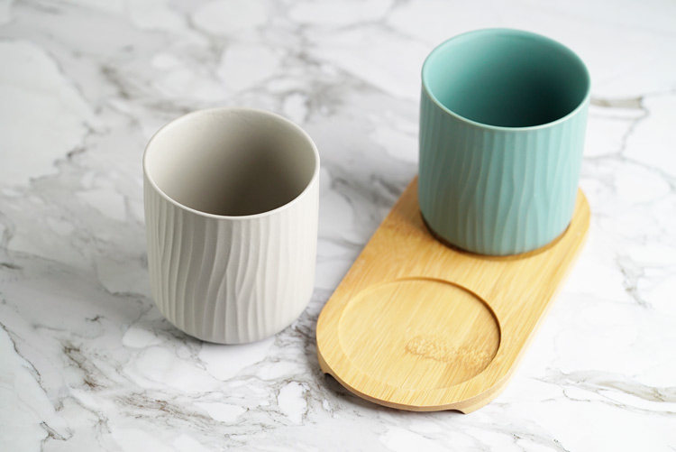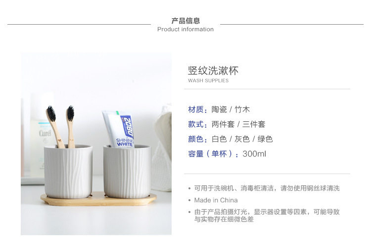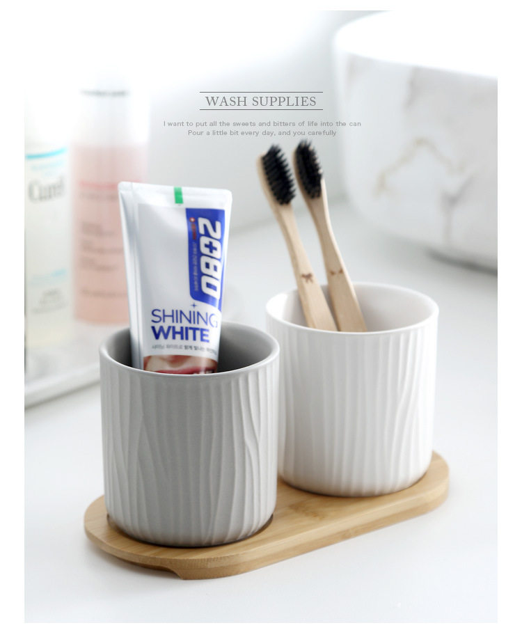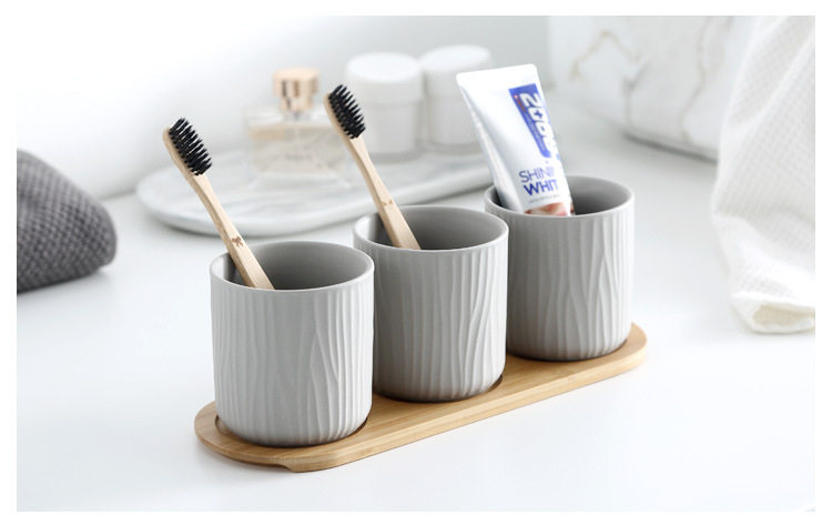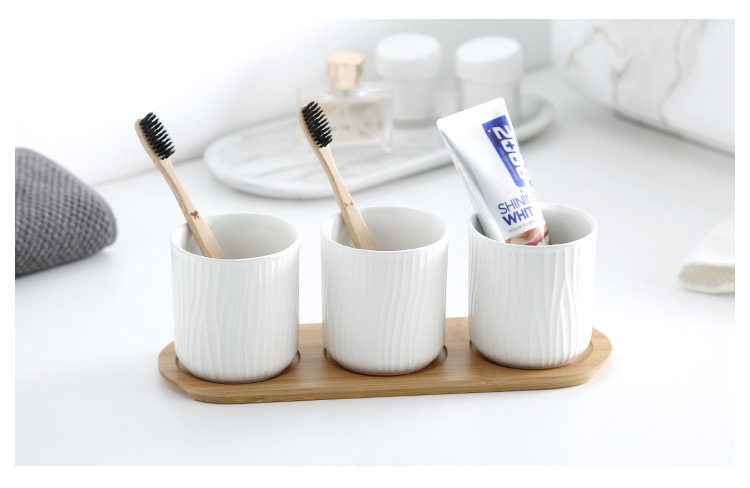 哑光树纹创意陶瓷漱口杯水杯三件套家庭情侣随手杯酒店用品直销