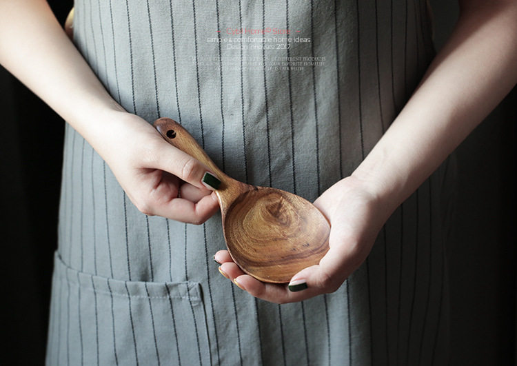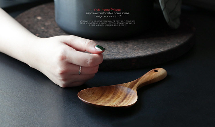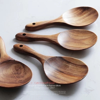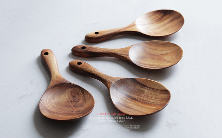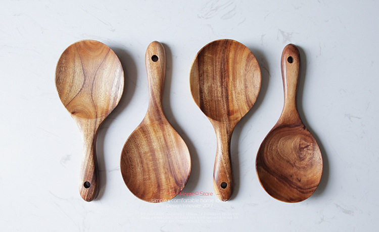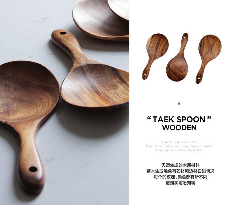 无漆柚木整木家用木勺子不粘锅专用小饭铲18cm木质饭勺子厨房餐具