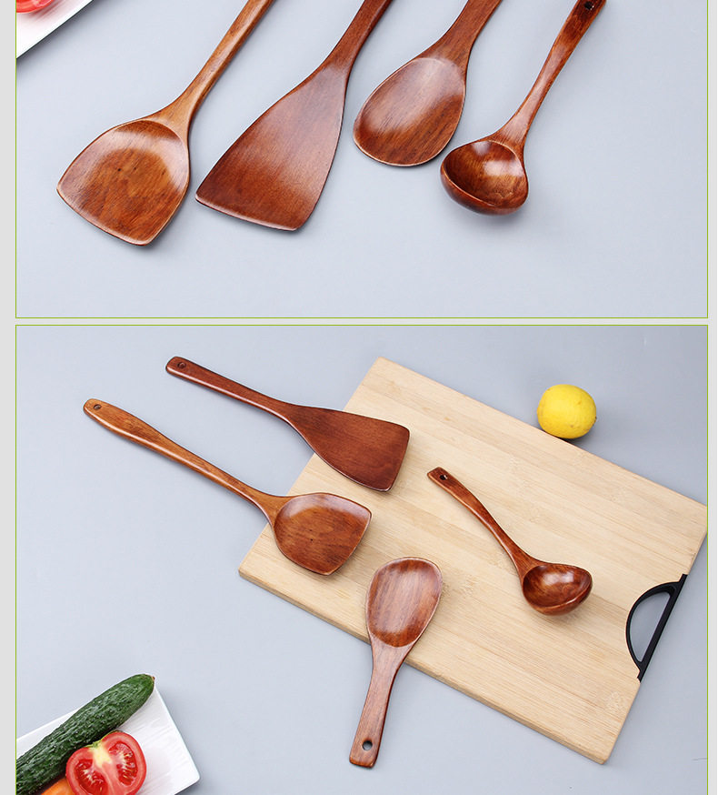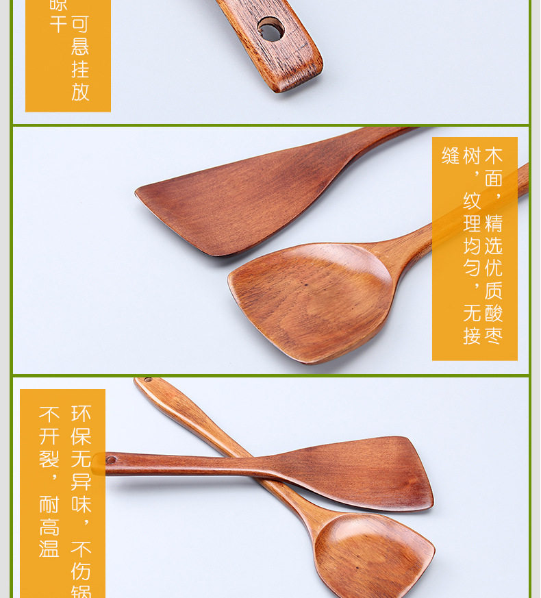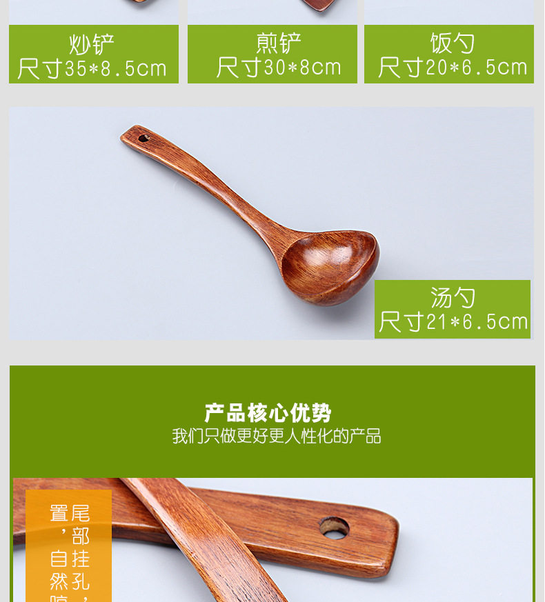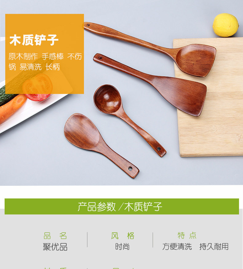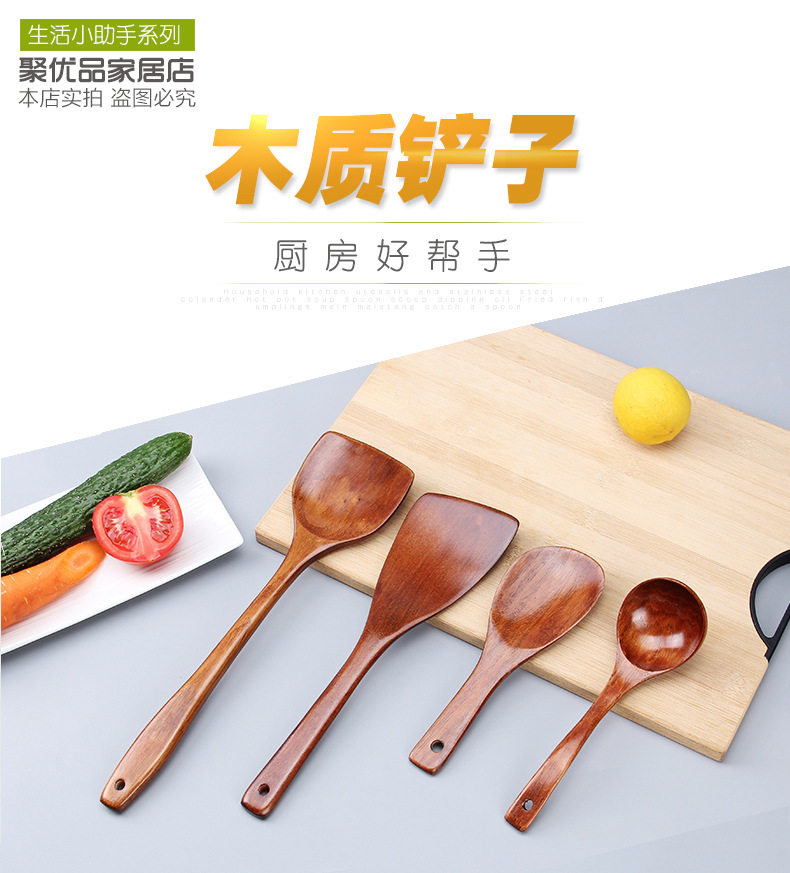 柯木老漆木铲子 不粘锅专用锅铲套装 木质平底锅铲煎铲饭勺炒菜铲